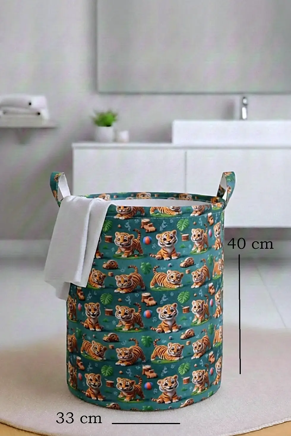 Kaplan Baskılı Katlanır Kirli Çamaşır ve Çocuk Oyuncak Sepeti