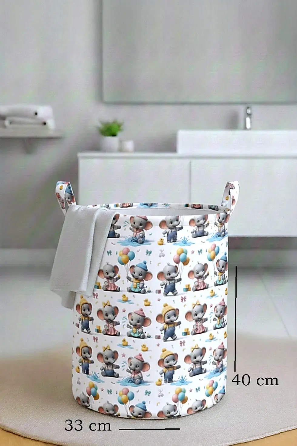 Fil Baskılı Katlanır Kirli Çamaşır ve Çocuk Oyuncak Sepeti