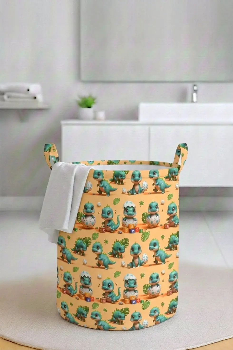 Dinozor Baskılı Katlanır Kirli Çamaşır ve Çocuk Oyuncak Sepeti